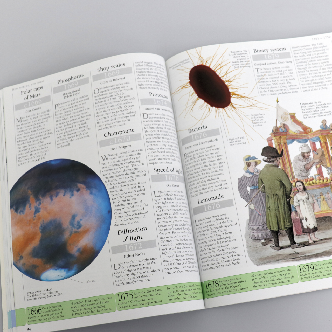 1000 Inventions and Discoveries is a vibrant, illustrated journey through human ingenuity, from ancient tools to modern marvels. Presented in a year-by-year timeline, this book mixes fascinating facts with visuals spanning prehistoric hunting gear to today’s smartphones, and even the first image of a black hole. It’s the sort of book that invites quick dips or longer deep-dives, perfect for sparking curiosity and drawing connections between simple ideas and world-changing breakthroughs.