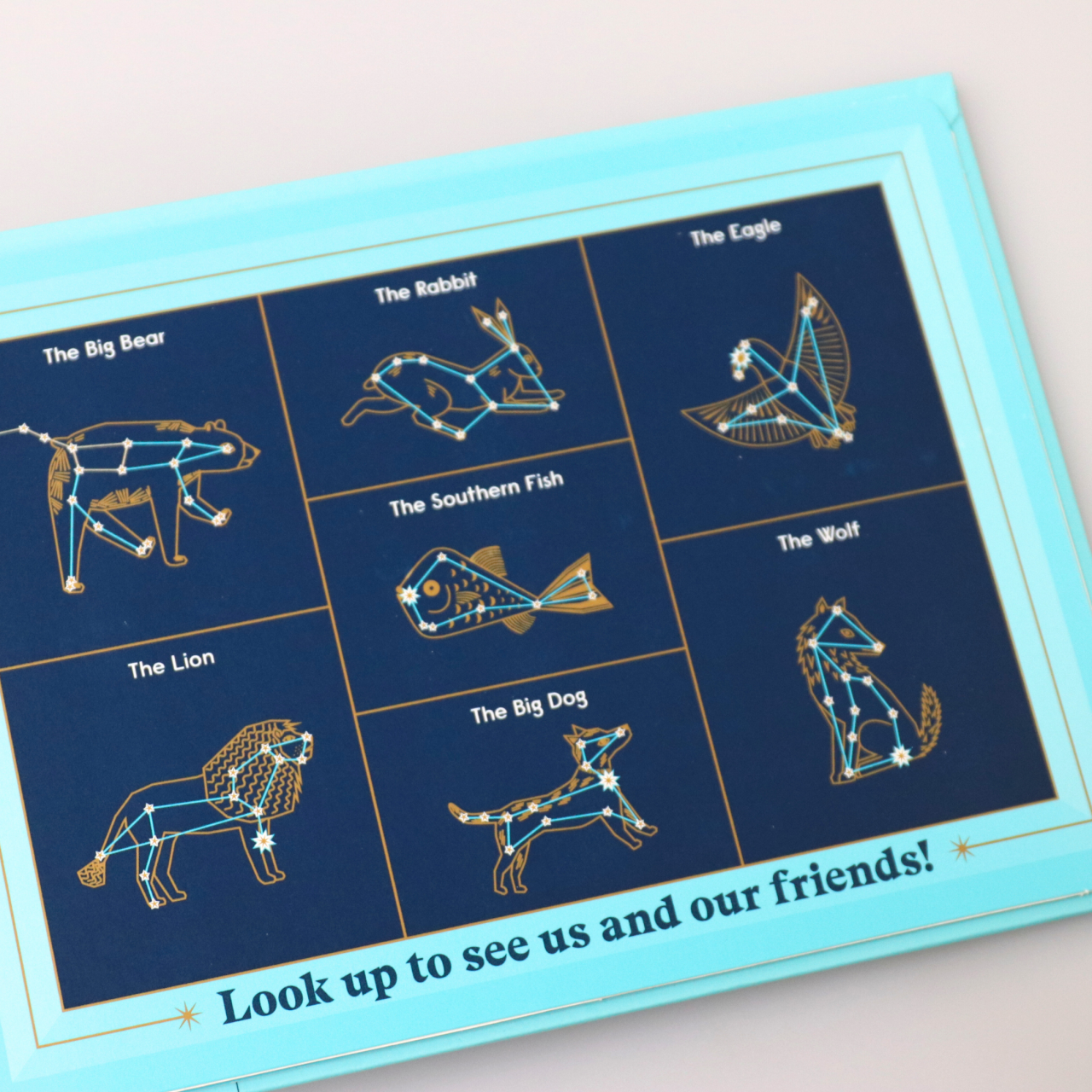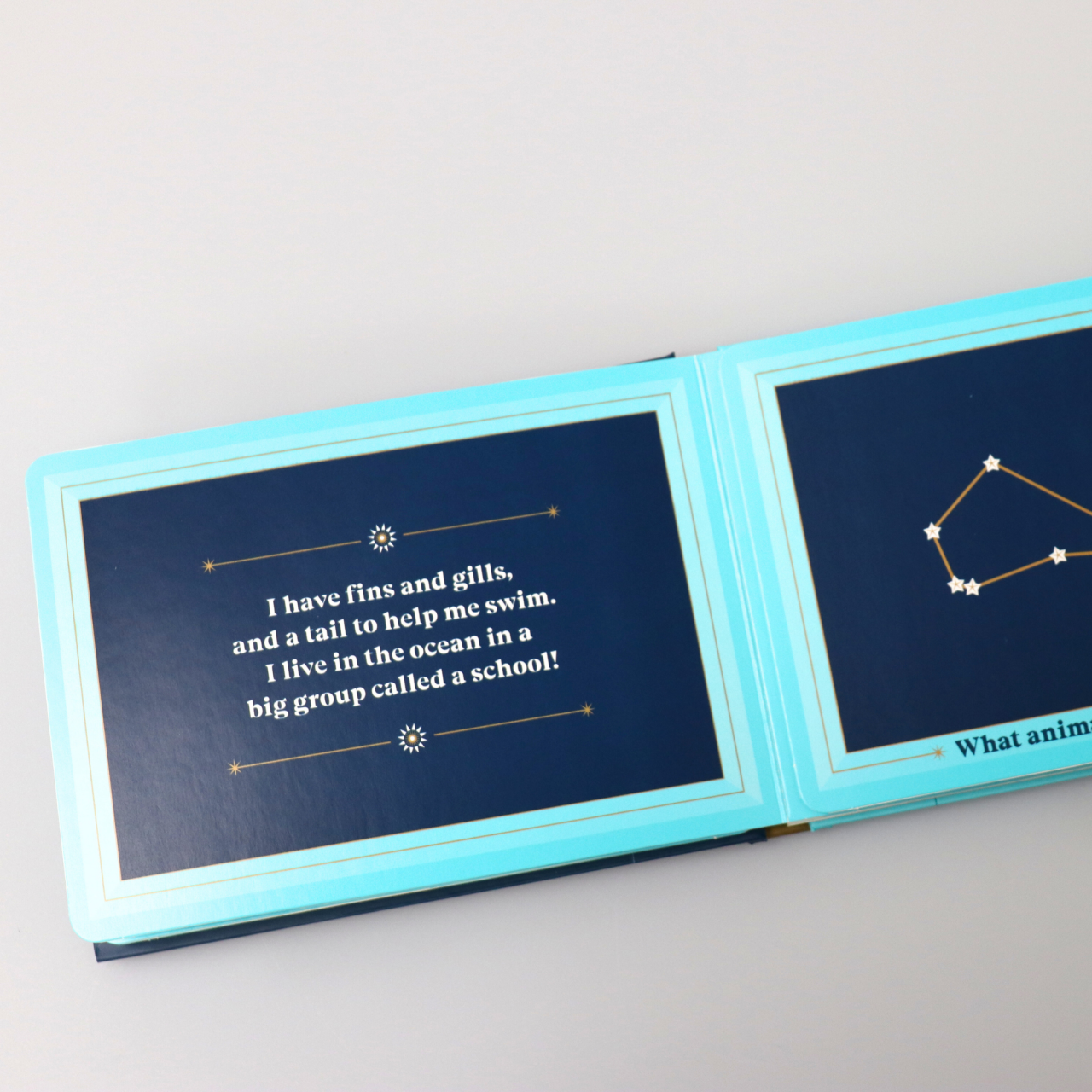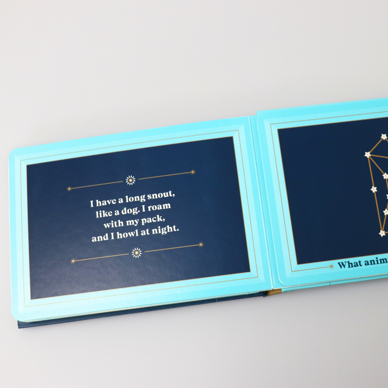 Each constellation is depicted as a cluster of stars, inviting readers to guess the animal before revealing the full illustration. This interactive approach not only makes learning about the stars fun but also encourages curiosity about the world above us.