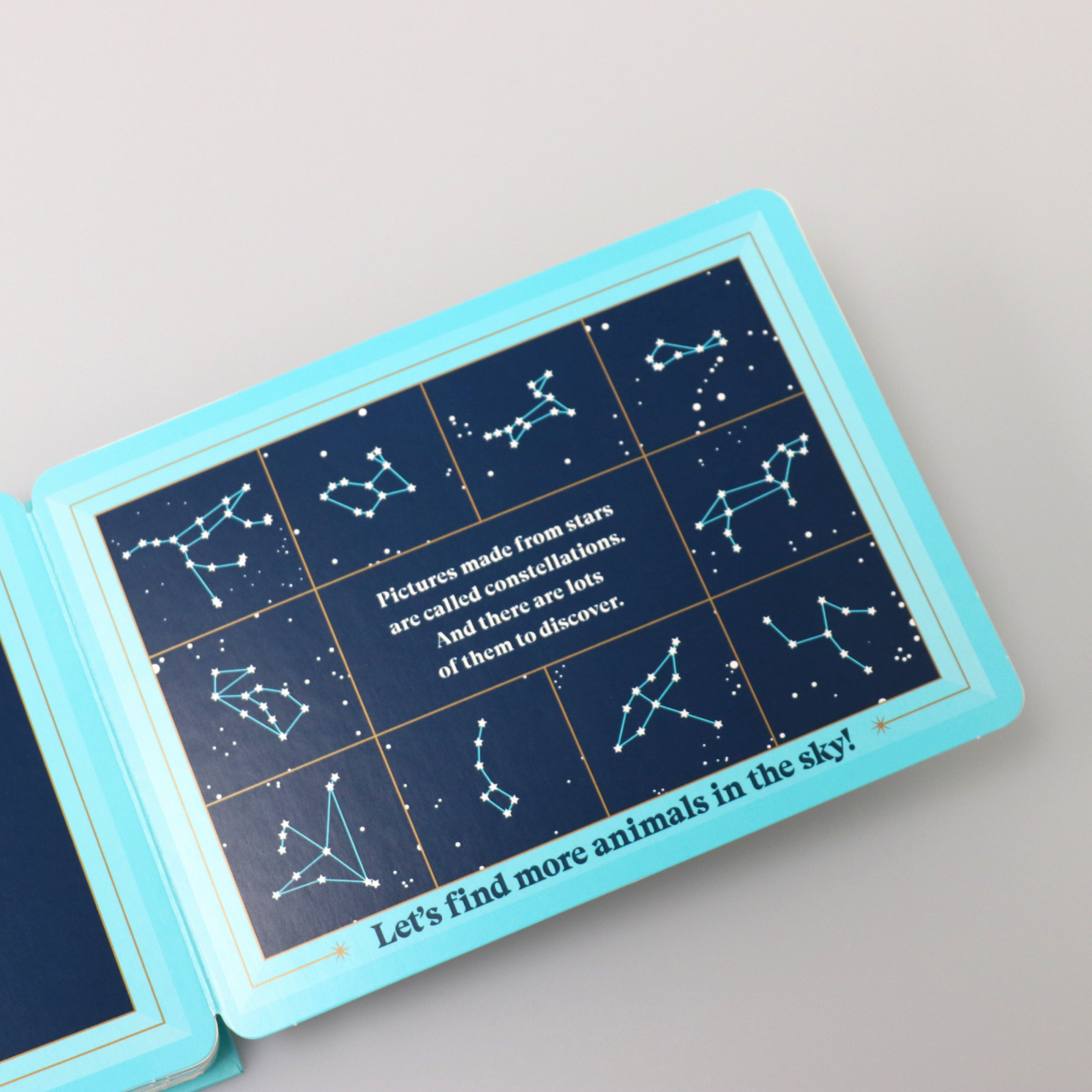 Animals in the Sky by Sara Gillingham is a beautifully illustrated board book that introduces young children to the wonders of the night sky. Through simple, engaging text and vibrant illustrations, it presents six of the most recognizable animal constellations, such as The Great Bear and The Southern Fish.