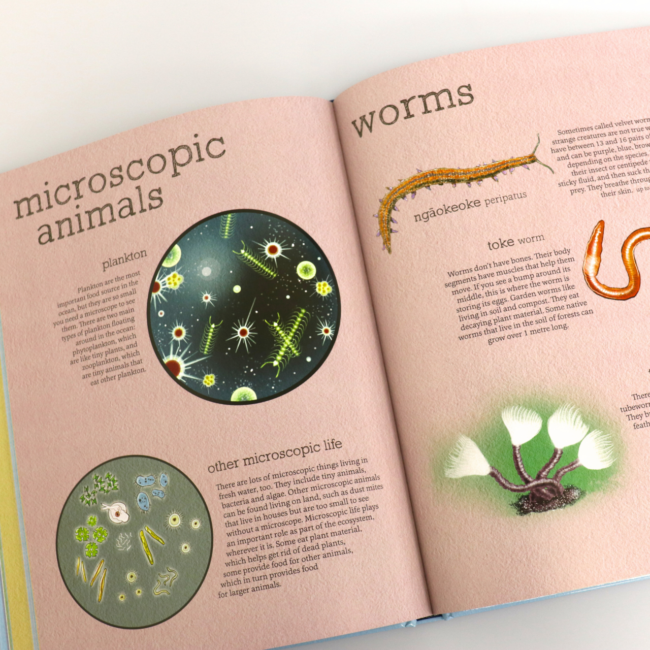 Animals of Aotearoa is a rich and beautifully illustrated hardcover compendium that introduces children to the wild animals of New Zealand both native and introduced. From alpine birds to subterranean insects, the book opens up the hidden lives of frogs, lizards, fish and invertebrates through vibrant art and engaging descriptions.