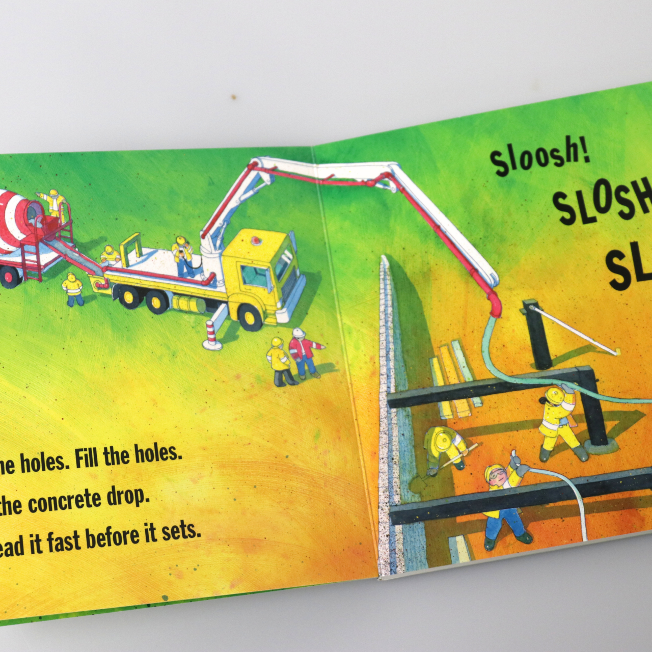 The engaging onomatopoeia and energetic pacing captivate young readers, making them feel part of the action. Perfect for children fascinated by machines, teamwork, and the process of building, this book offers an exciting glimpse into the world of construction.