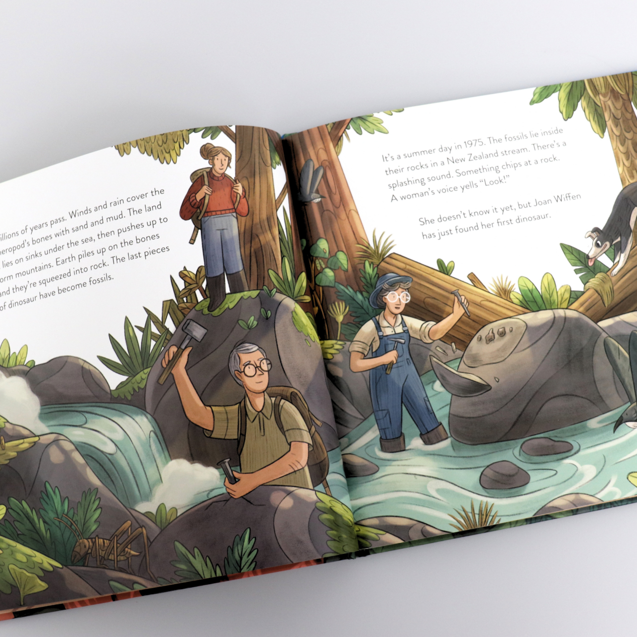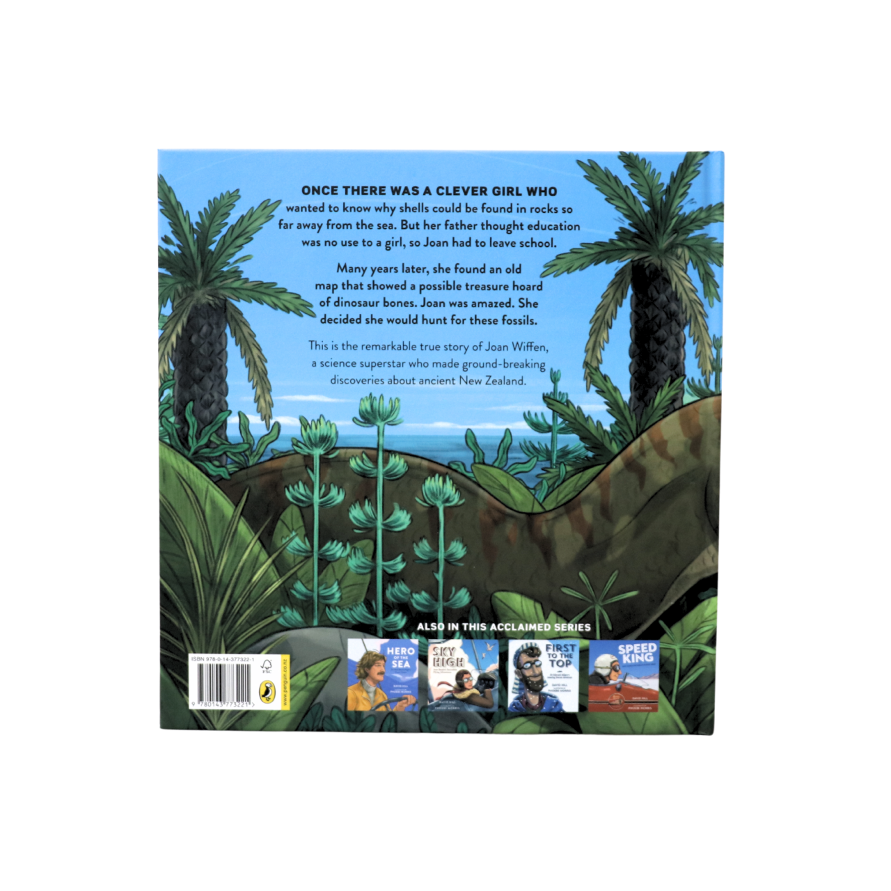 Dinosaur Hunter is the inspiring true story of Joan Wiffen, a self-taught fossil hunter whose discoveries in New Zealand proved dinosaurs once roamed these shores. From searching through rocks on a hunch to making world-changing paleontological finds, Joan’s journey shows how curiosity and perseverance can rewrite what we know about our world. With vivid illustrations and accessible storytelling, this book invites young readers to imagine themselves as explorers and scientists uncovering hidden histories.