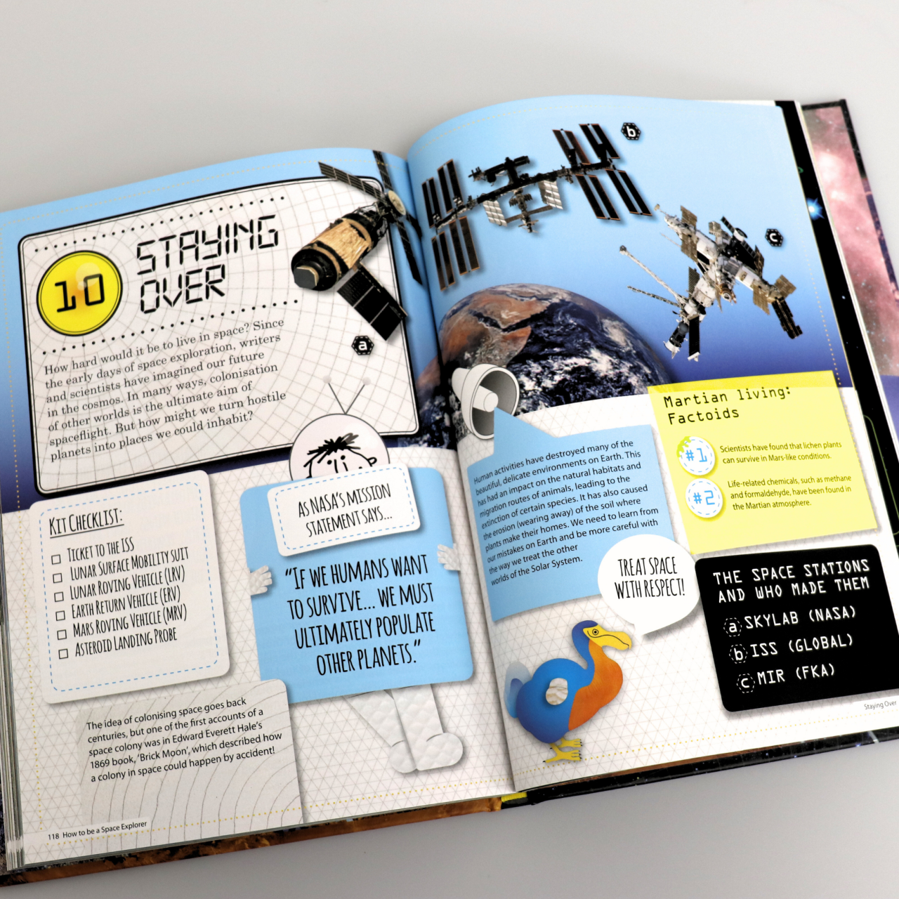Children learn about planets, spacecraft, gravity, and life in orbit through bite-sized explanations and vivid visuals that make big ideas easy to grasp.