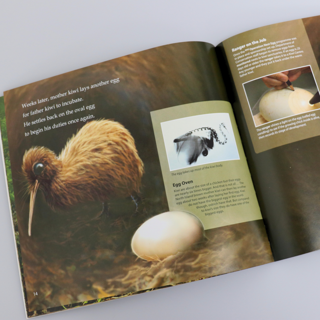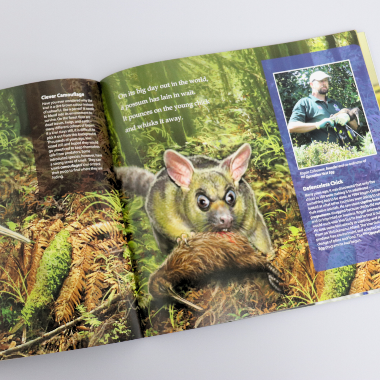 Readers learn about a real conservation programme that rescues kiwi chicks, showing how tracking, habitat protection, and human care combine to protect species.