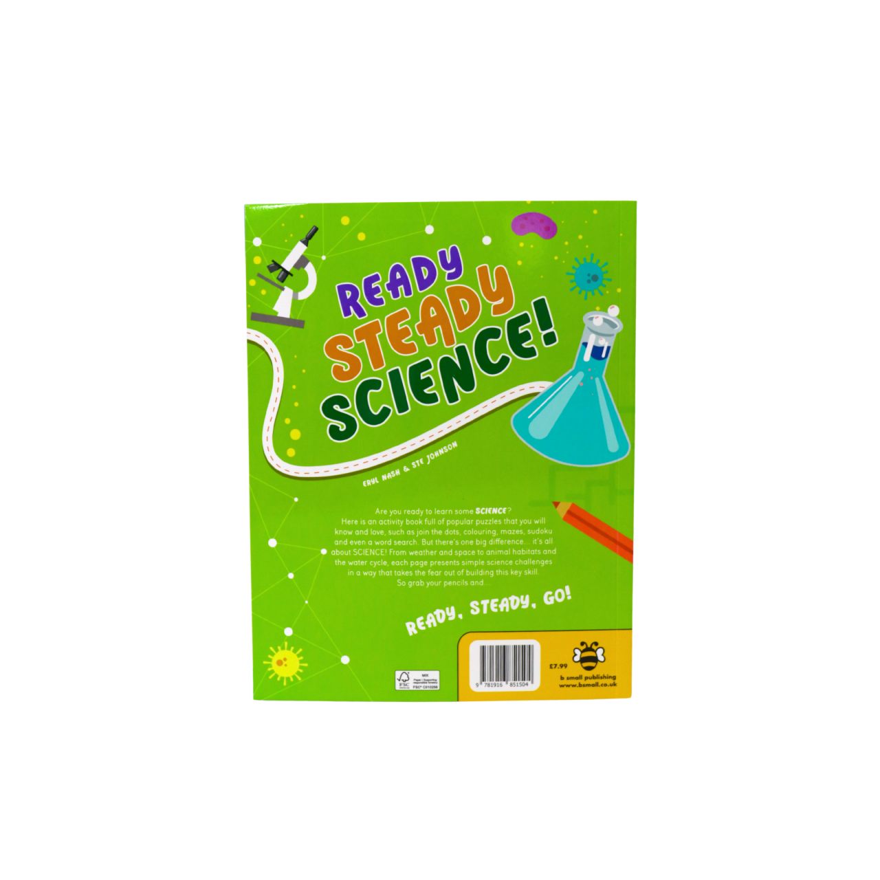 Ready Steady Science is an energetic activity book that turns everyday science into a playground of puzzles. With mazes, join‑the‑dots, colouring tasks and word searches, it guides young learners through weather patterns, space phenomena, animal habitats and the water cycle in a friendly, hands‑on way.