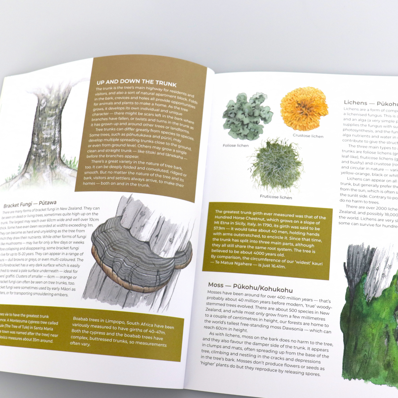 By guiding children to explore the hidden life on and around trees like fungi, skinks and insects, the book helps them practice noticing smaller details and patterns in nature.