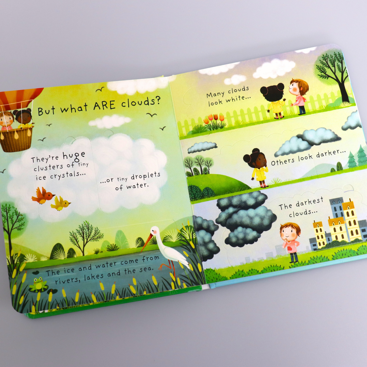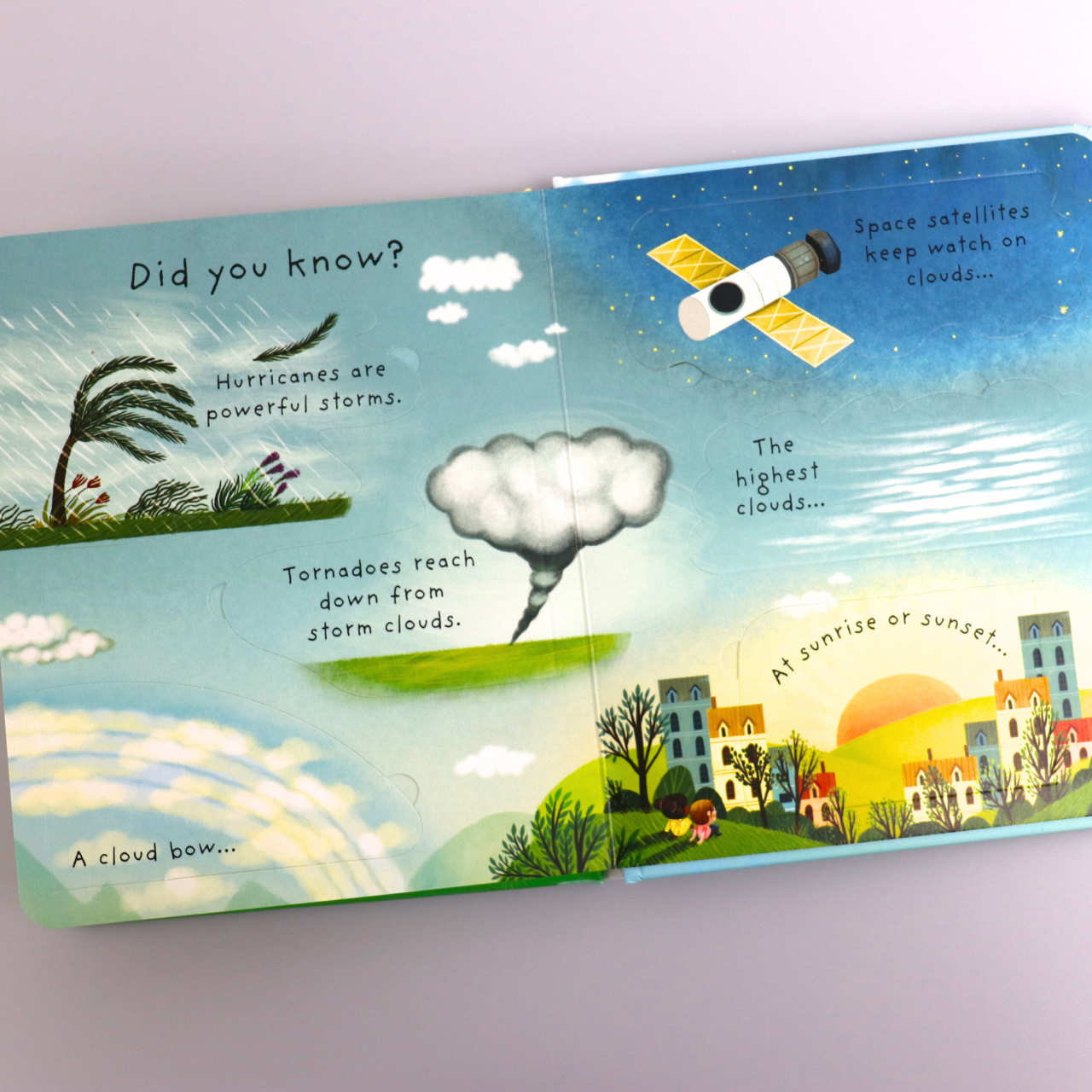 The sturdy flaps hide fun facts about the shapes, types, and functions of clouds, making the science of the sky both accessible and intriguing for early learners.