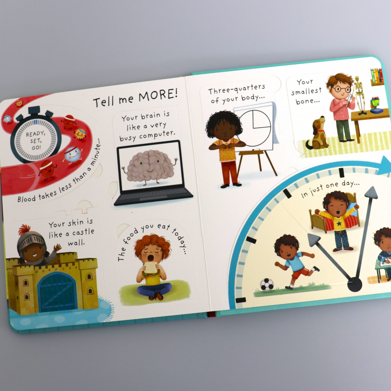 Each page includes flaps to lift, turning the process of discovery into a mini-adventure. It’s a lovely way to help children understand themselves in a friendly, accessible way.